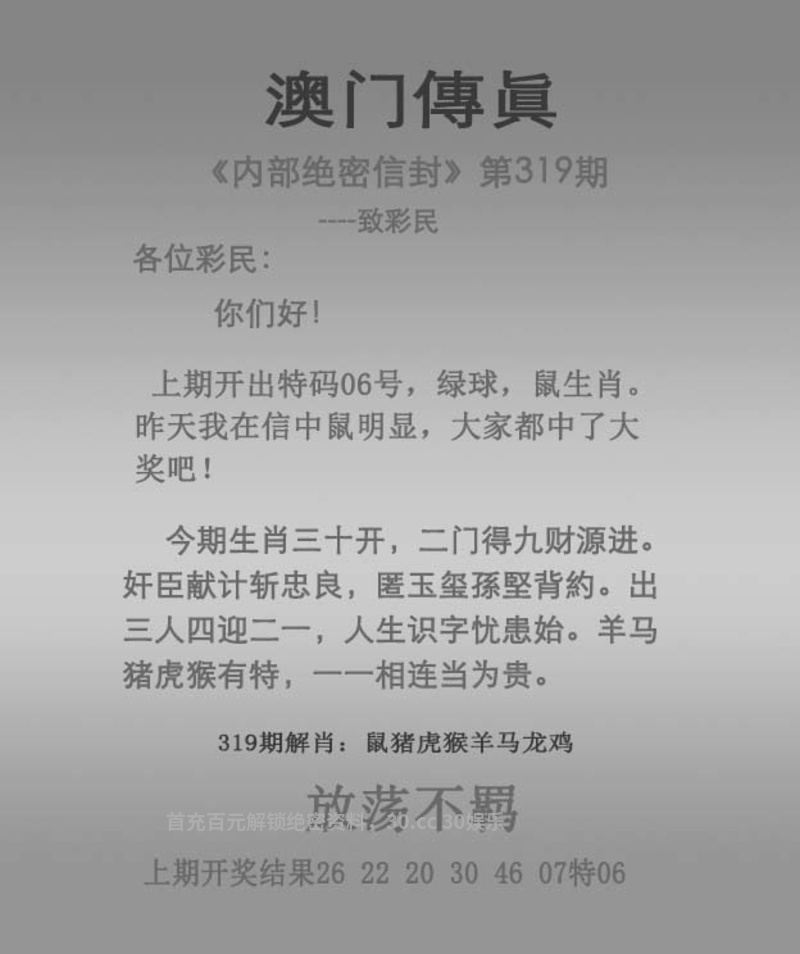 | 318期:两波中特【红波绿波】开:鼠06中 |